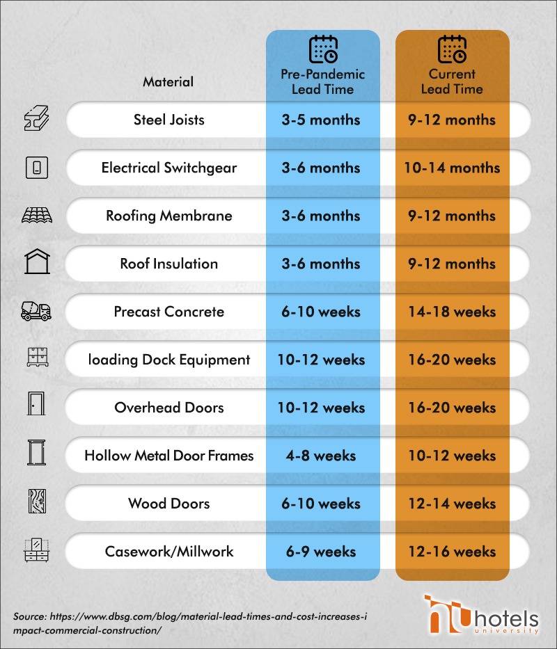 Demand for building materials remains robust while the world continues to push through the pandemic. However, the lasting effects of the pandemic and the associated mitigation efforts, have impacted the production of materials and equipment through factory slowdowns, factory shutdowns, and quarantines. As a result, equipment and material lead times and cost increases have impacted the construction sector. Are you considering the lead time in your project?